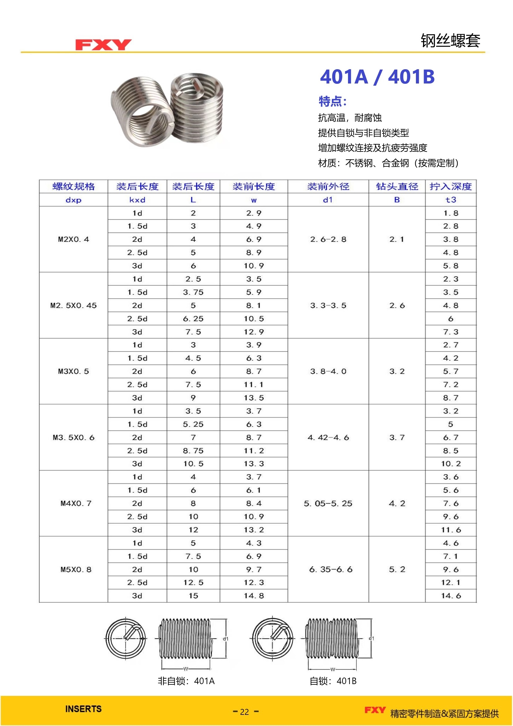 钢丝螺套是一种新型内螺纹紧固件,它是由高强度、高精度、高表面质量的耐蚀菱形截面的钢丝绕制而成,形如弹簧。钢丝螺套装入螺孔中,钢丝螺套的外表面靠弹力贴合在螺孔上, 其内表面形成新的螺纹,用于拧入螺钉或螺栓,使螺钉或螺栓不直接与基体接触,保护了基体及螺钉,起到延长螺纹使用寿命、增加螺纹连接强度、增大螺纹受力面、增加螺纹连接的承载力和抗疲劳强度、抗震防松脱等作用。在铝、镁合金等低强度工程材料上应用可以明显提高螺纹强度和耐磨性,同时钢丝螺套还改善了螺纹的受力情况,使螺纹整体用力,提高了螺纹联接的强度。 钢丝螺套也可用于修复磨损或损坏的内螺纹孔。
