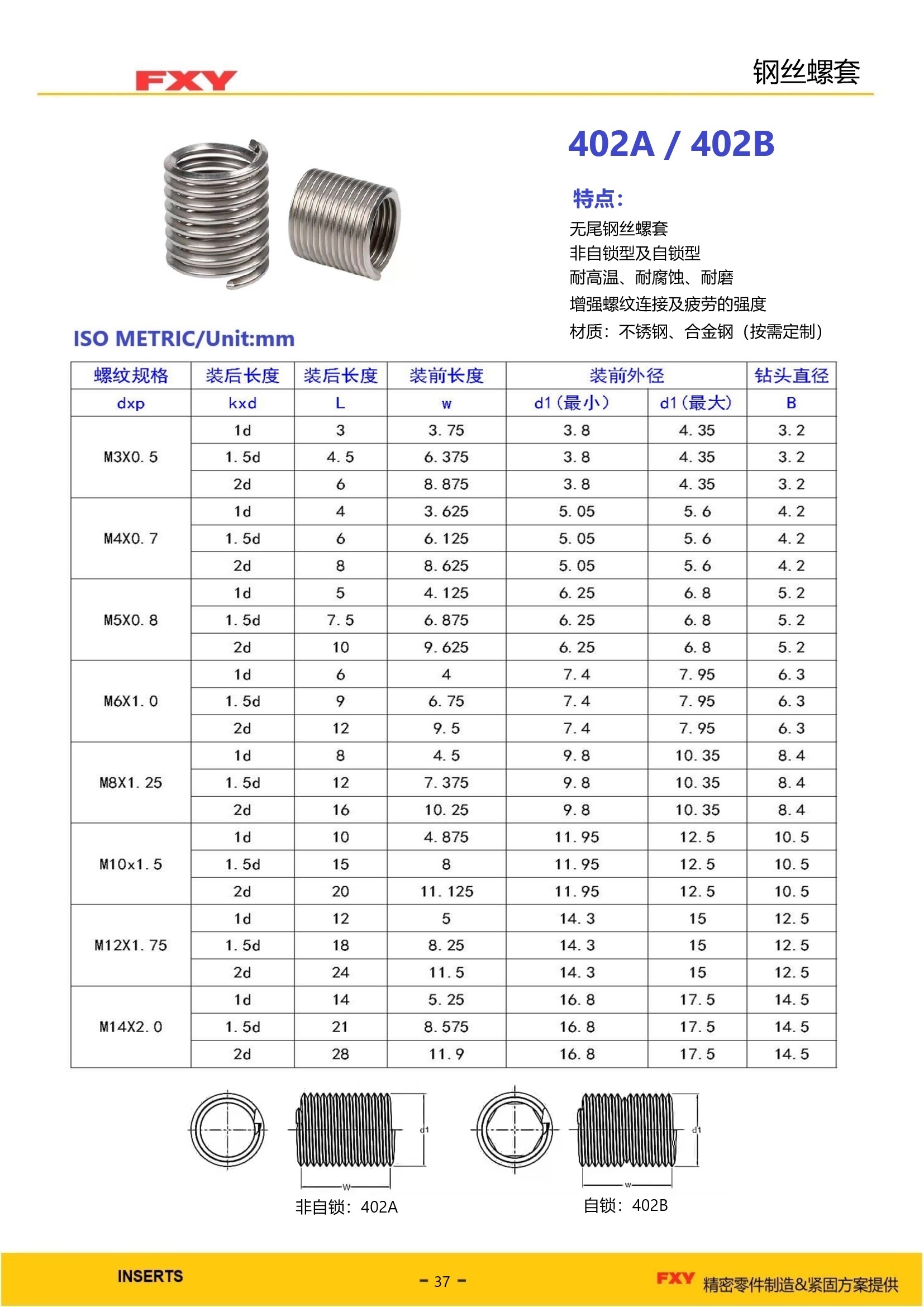 钢丝螺套和自攻螺套产品一样,在航空、航天器、船用、车用动力机械,液力传动机械,风动工具,气动元件、化纤、纺织、烟草机械、光学仪器、电器、高压开关、汽车修理等行业的产品和设备上得了普遍应用。