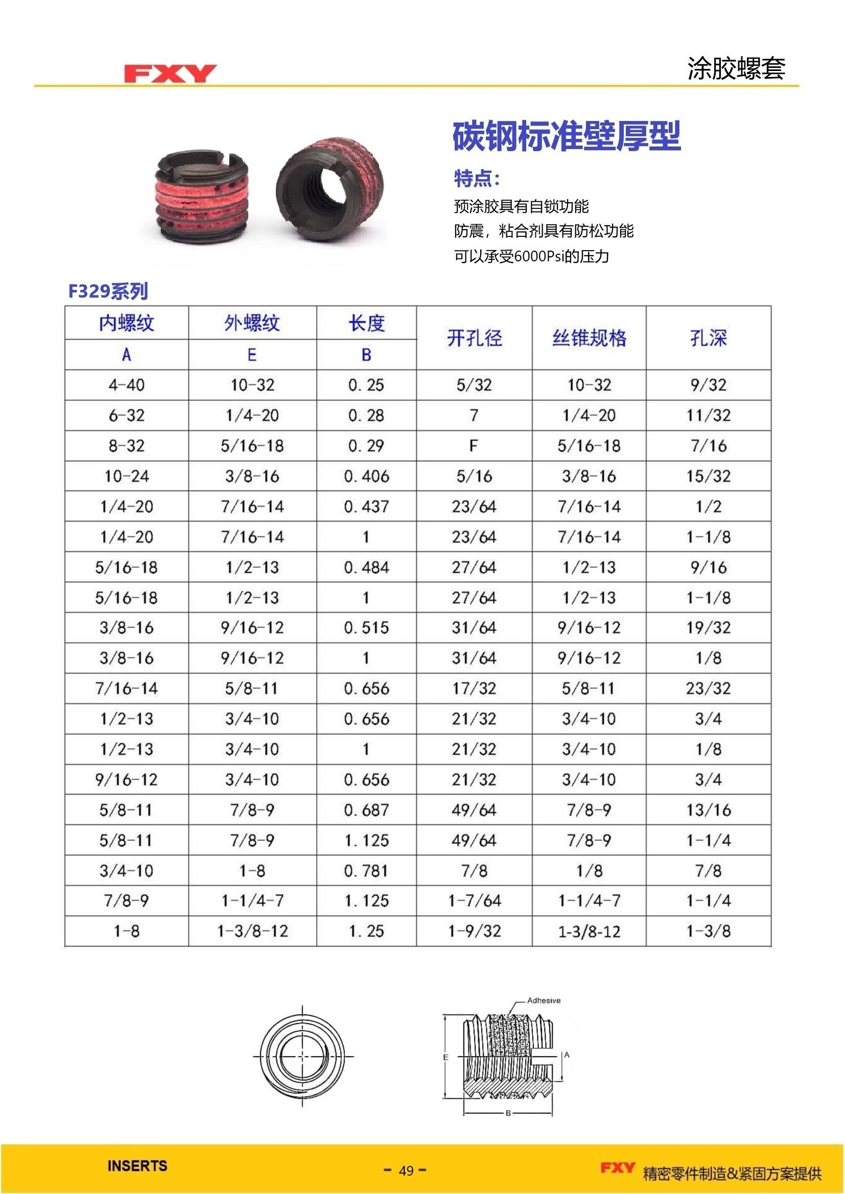 5、涂胶牙套在安装进入螺丝孔后,会自动释放粘合济,并与螺丝孔的内螺纹相粘合,4-5分钟内开始固化,72小时内完全固化,固化后可以承受可以承受液体/气体6000 psi的压力