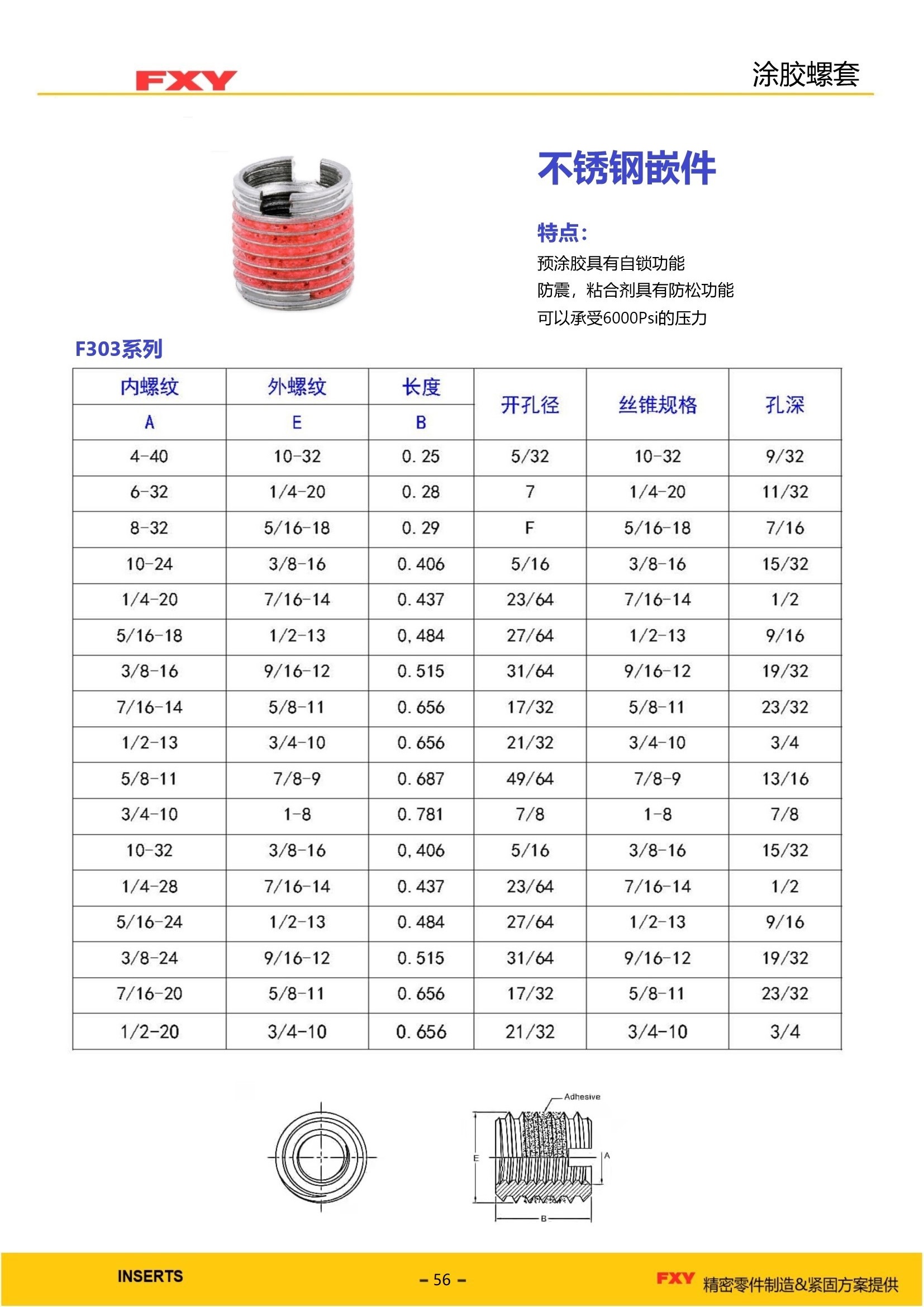 5、涂胶牙套在安装进入螺丝孔后,会自动释放粘合济,并与螺丝孔的内螺纹相粘合,4-5分钟内开始固化,72小时内完全固化,固化后可以承受可以承受液体/气体6000 psi的压力