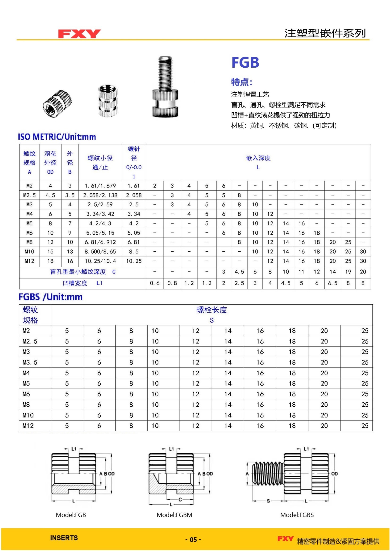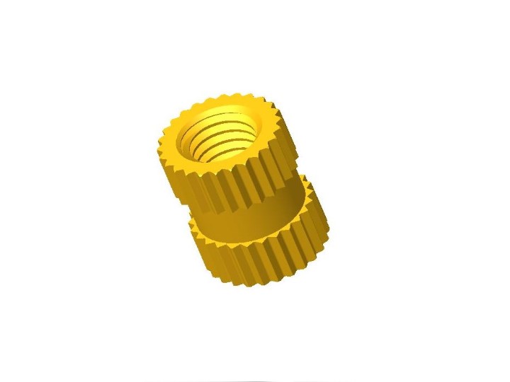 铜螺母使用铜材质(一般是铅黄铜,如H59,H62)制作的螺母,铜螺母具有不易生锈、防腐蚀、易导热及导电性强等优点 注塑螺母作为嵌入式铜螺母的一种,最初的标准来源为GB/T809,但随着现代加工技术的发展,主流的注塑螺母早已脱出了该标准的范畴,有了更繁多的型号,更好的性能和更广泛的应用方式.从外观的角度,目前主流的注塑螺母可以分为钻石滚花螺母,直纹滚花螺母,六角螺母等三种,从开孔上又分为通孔注塑螺母和盲孔注塑螺母两种.