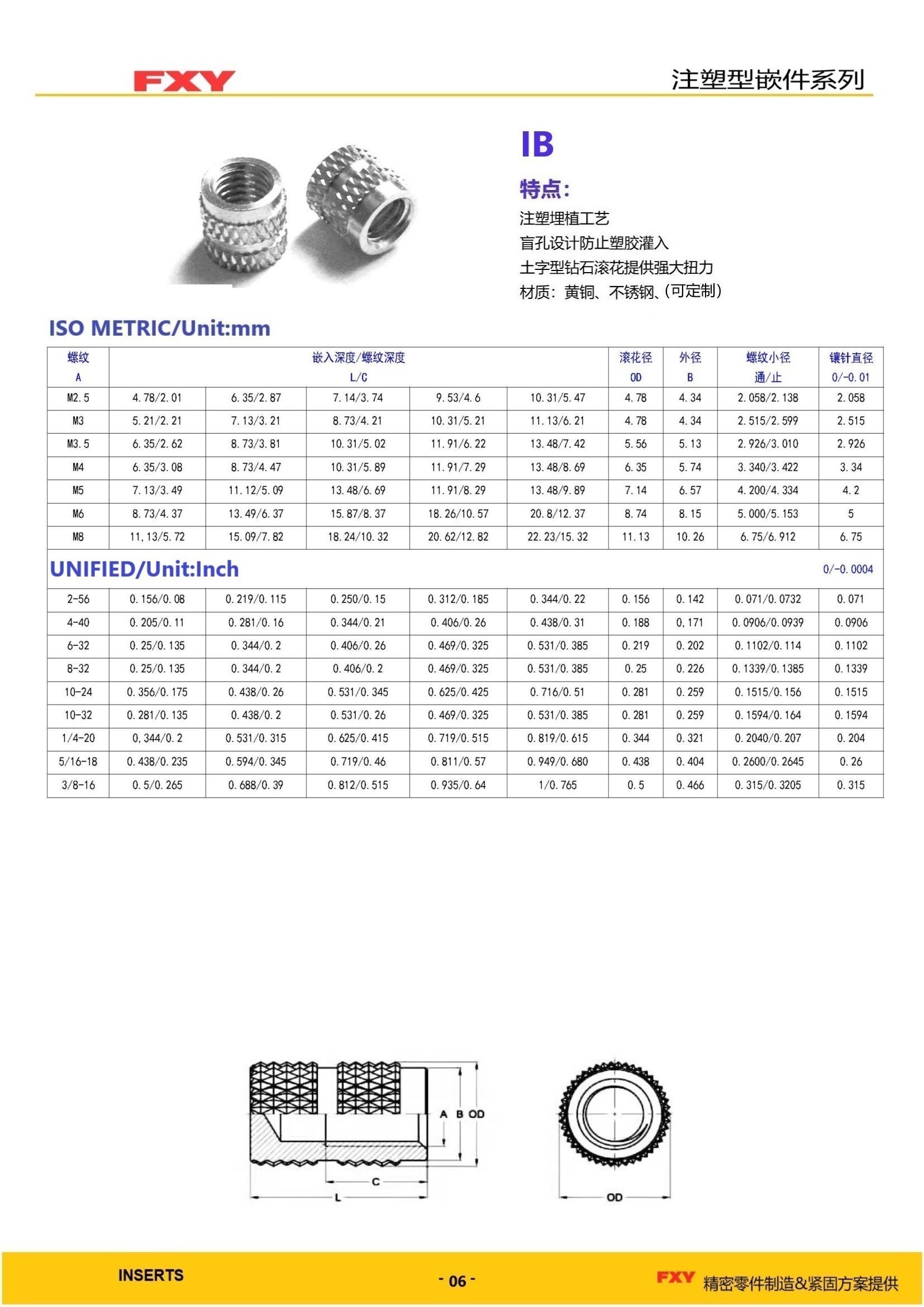 型号:IB技术设计特点: 1、盲孔设计防止胶汁灌入 2、砖石滚花提供扭力 3、材质;黄铜、不锈钢、可定制