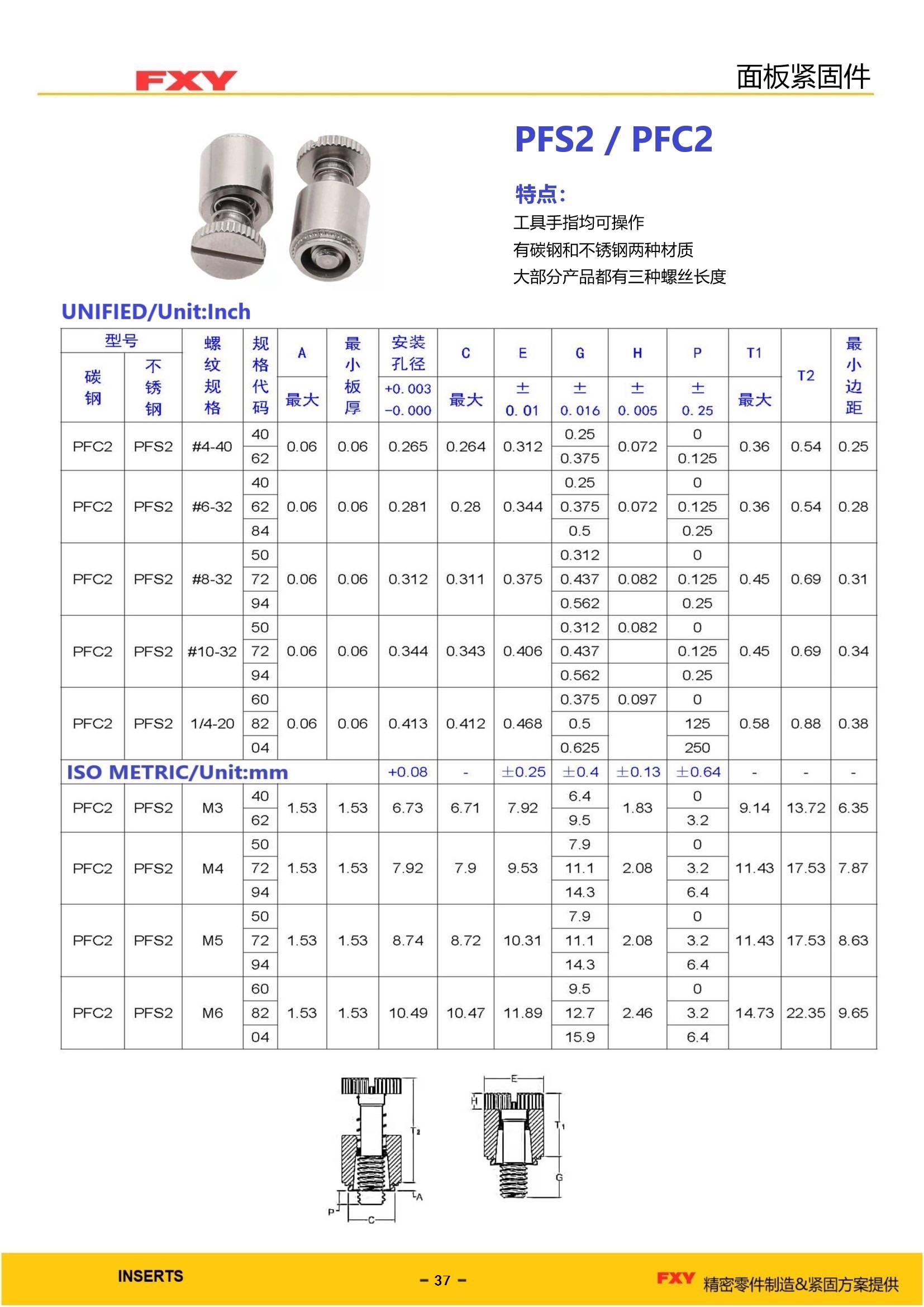 型号:PF52/PFC2技术特点: 1、工具手指均可操作 2、有碳钢与不锈钢两种材质 3、大部分产品都有三种螺丝长度