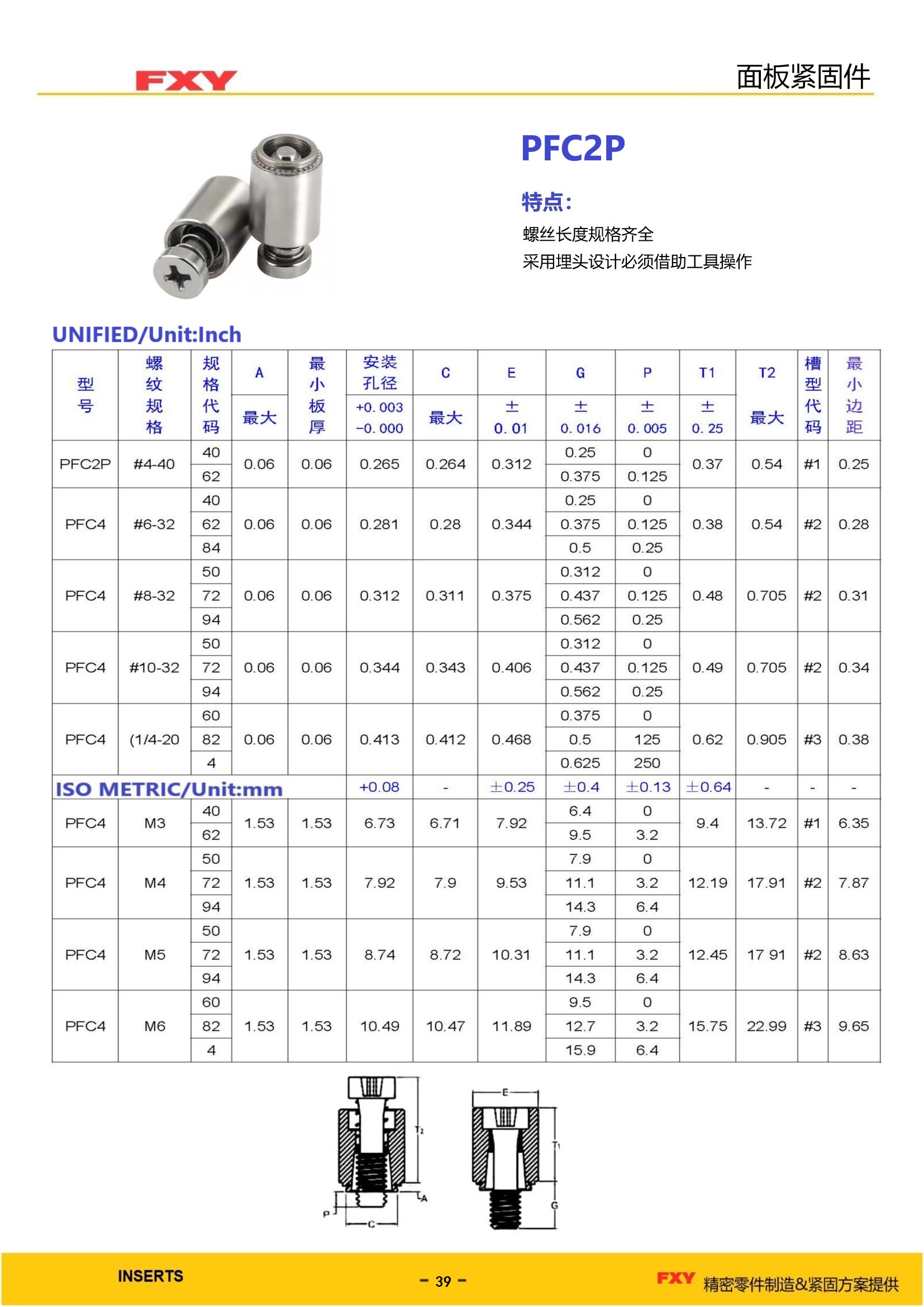 型号:PFC2P技术特点: 1、螺丝长度规格齐全 2、采用埋头设计必须借助工具操作