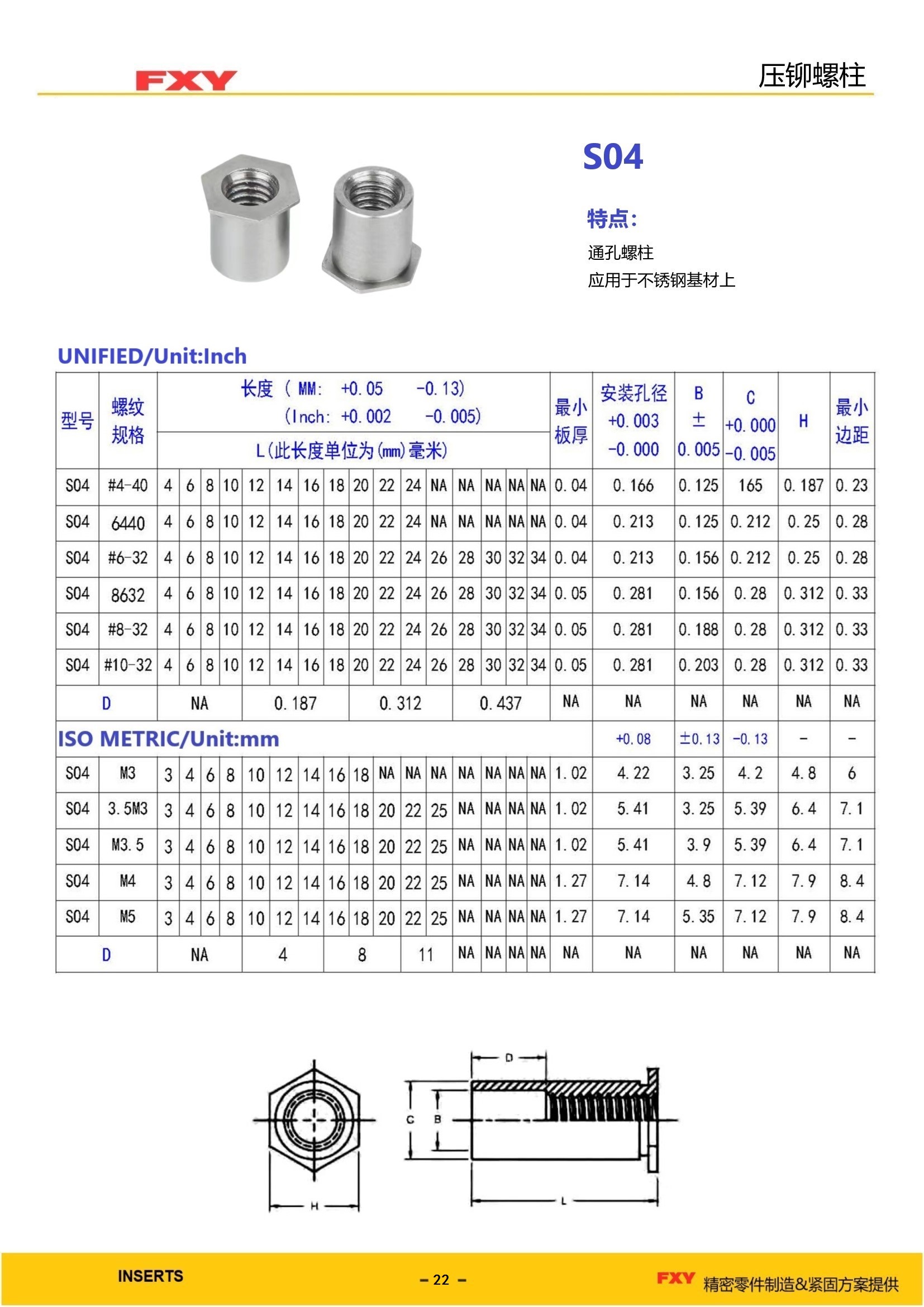 紧固件为主如:压铆螺母、压铆螺柱、压铆螺钉、松不脱螺钉、弹簧螺钉、焊接螺母、PCB板专用紧固件等。广泛应用于机箱机柜\钣金\及其它冲压件,其行业遍及通信\汽车\网络设备等行业。