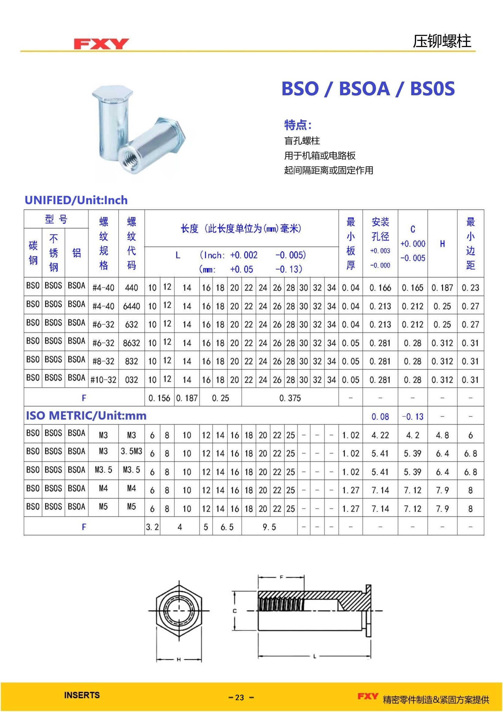 型号:BSO/BSOA/BSOS技术特点: 1、用于机箱或电路板 2、盲孔螺柱起间隔作用