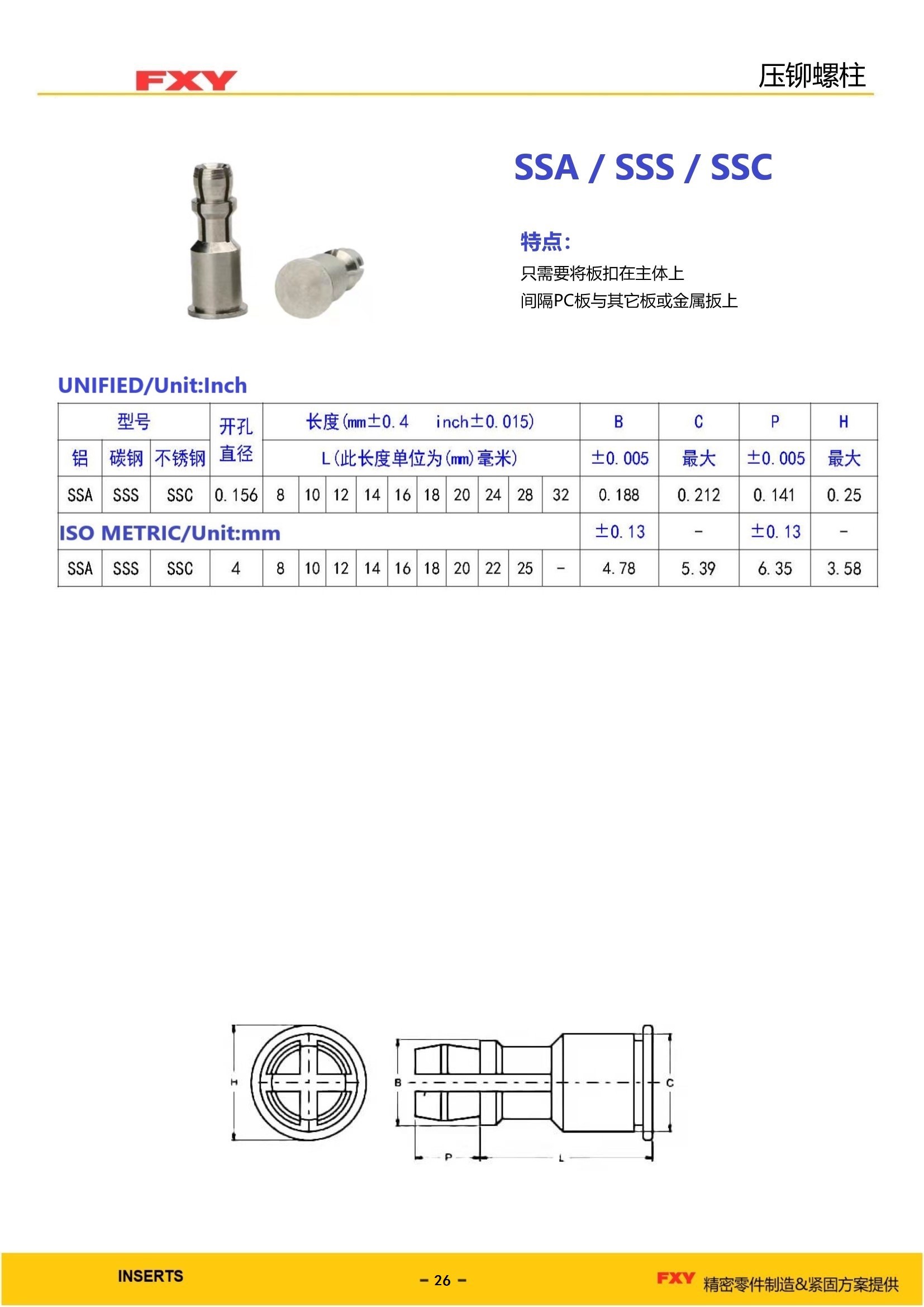 型号:SSA/SSS/SSC技术特点: 1、只需要将板扣在主体 2、应用于间隔PC板或金属板