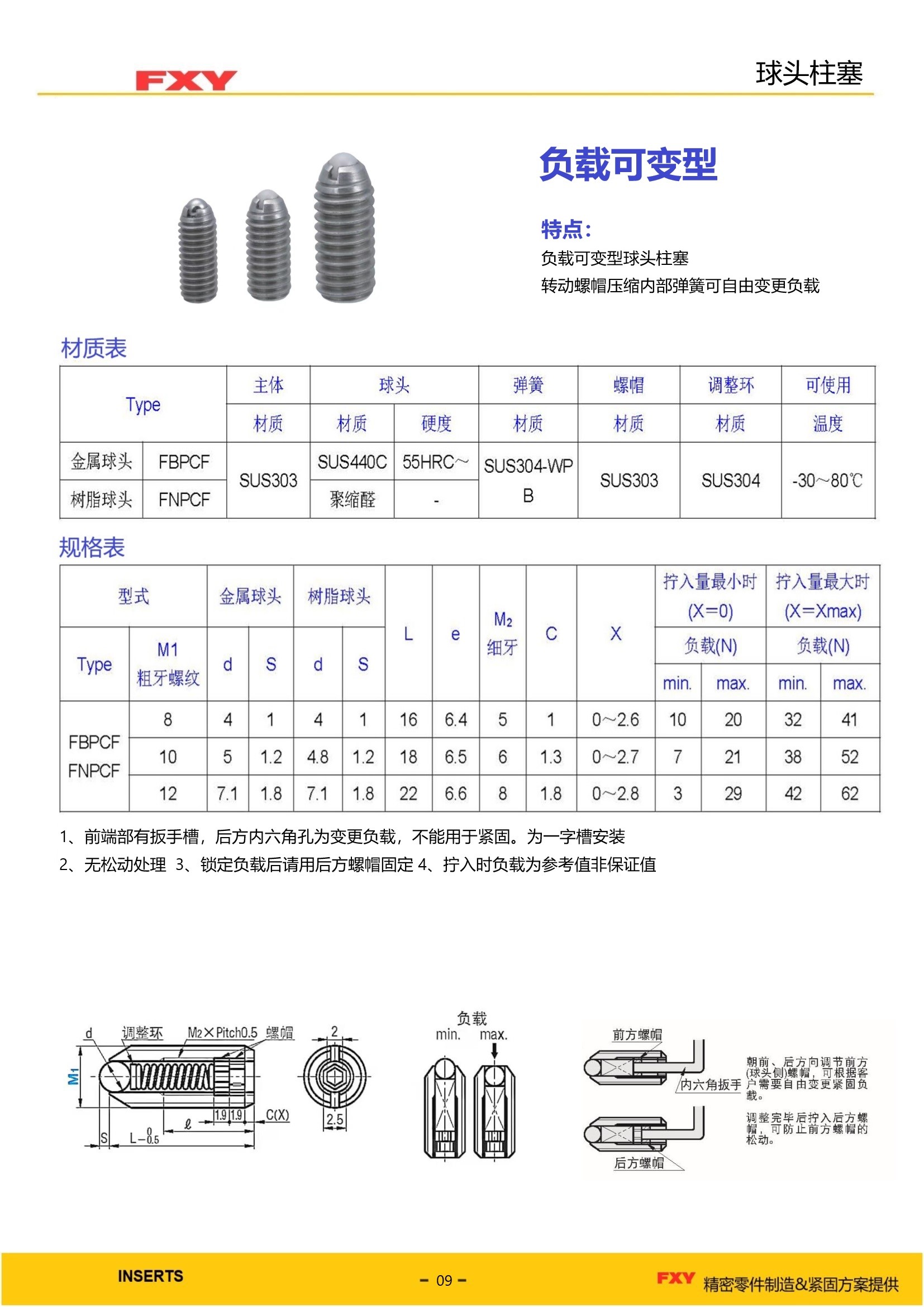 型号:负载可变型球头柱塞FBPCF/FNPCF 1、负载可变型 2、转动螺帽压缩内部弹簧可自由变更负载