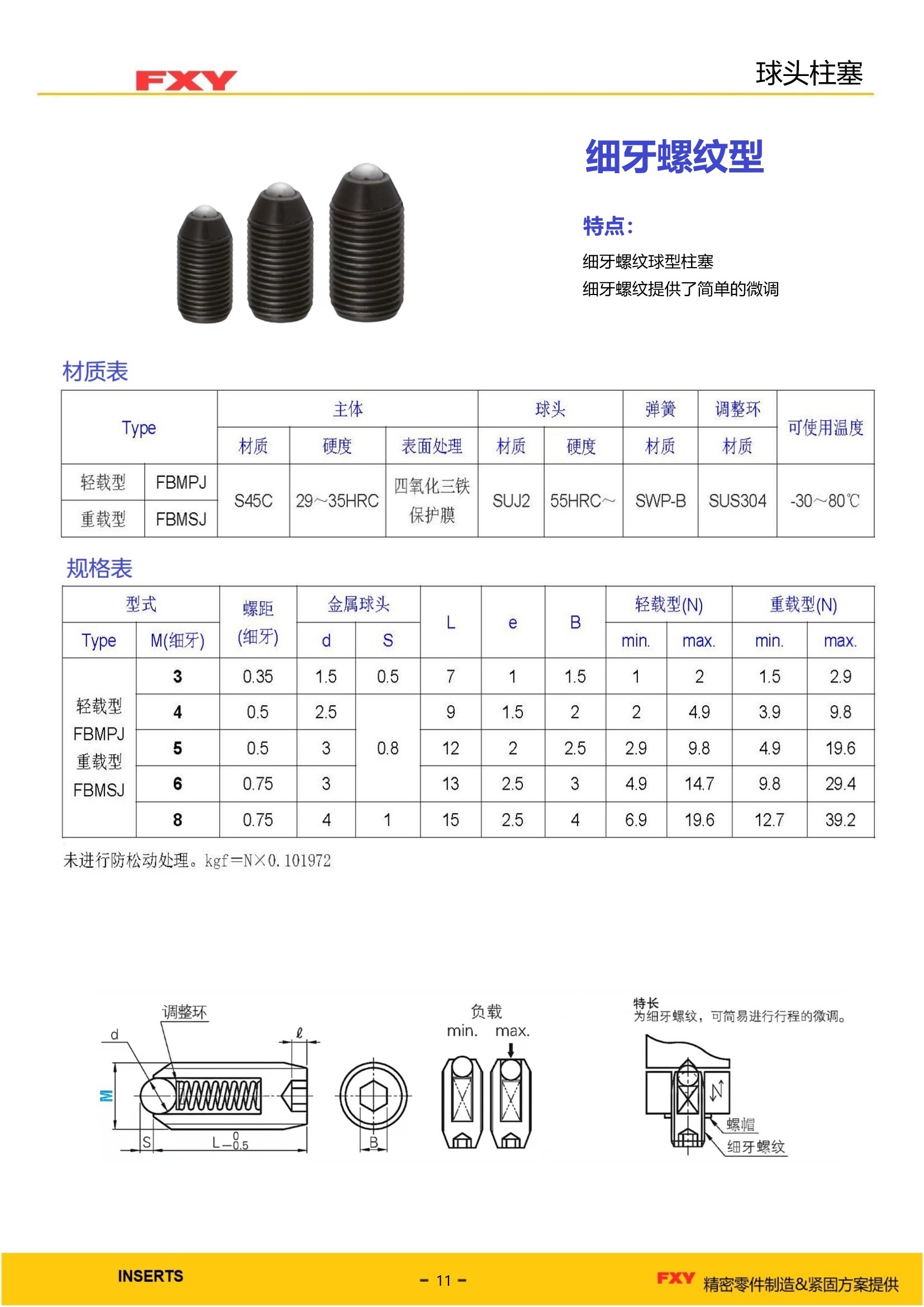 型号:球头柱塞细牙螺纹型FBMPJ/FBMSJ 1、细牙螺纹型 2、提供简单的微调