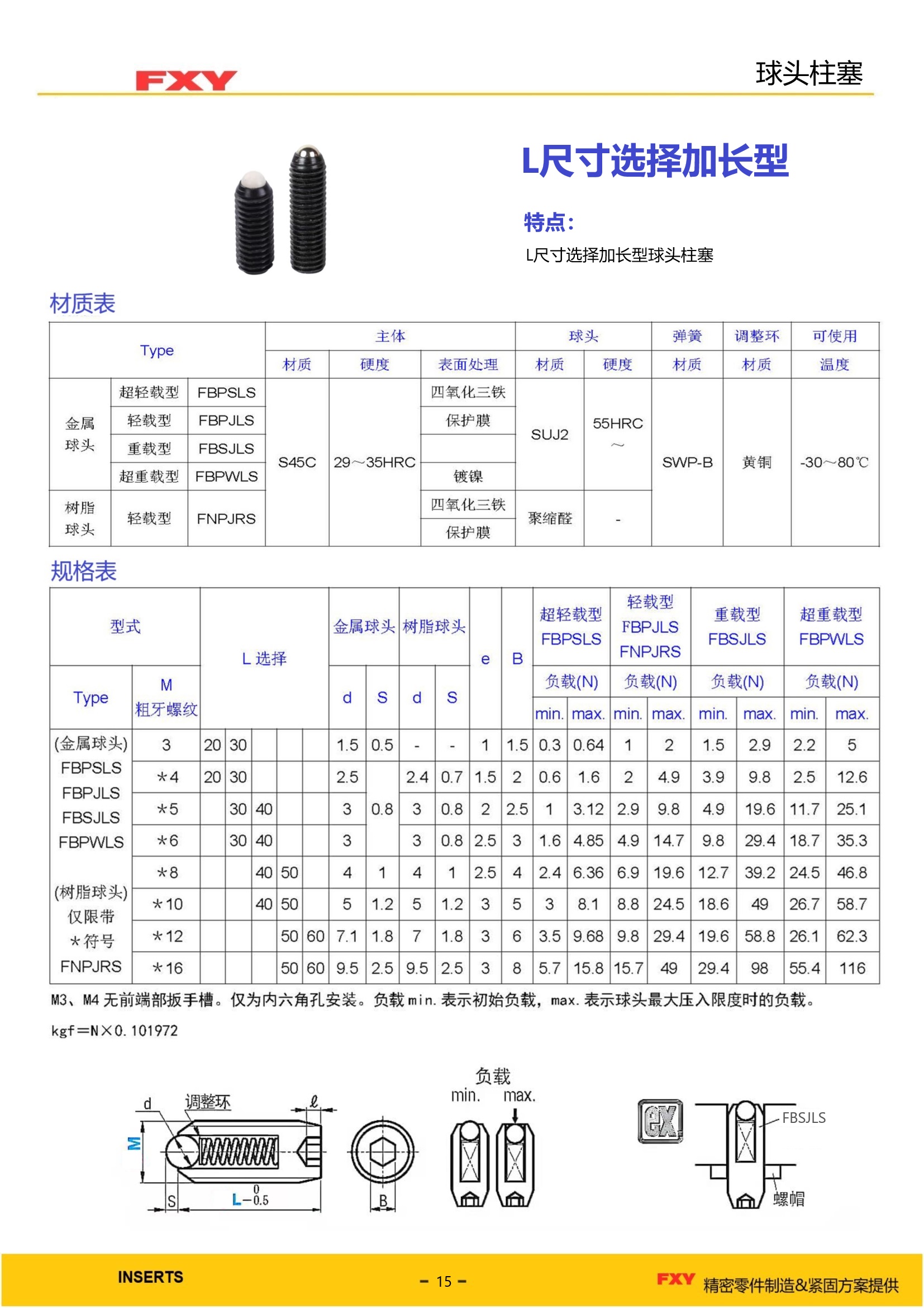 型号:球头柱塞L尺寸选择加长型FBPSLS/FBPJLS/FBSJLS/FBPWLS