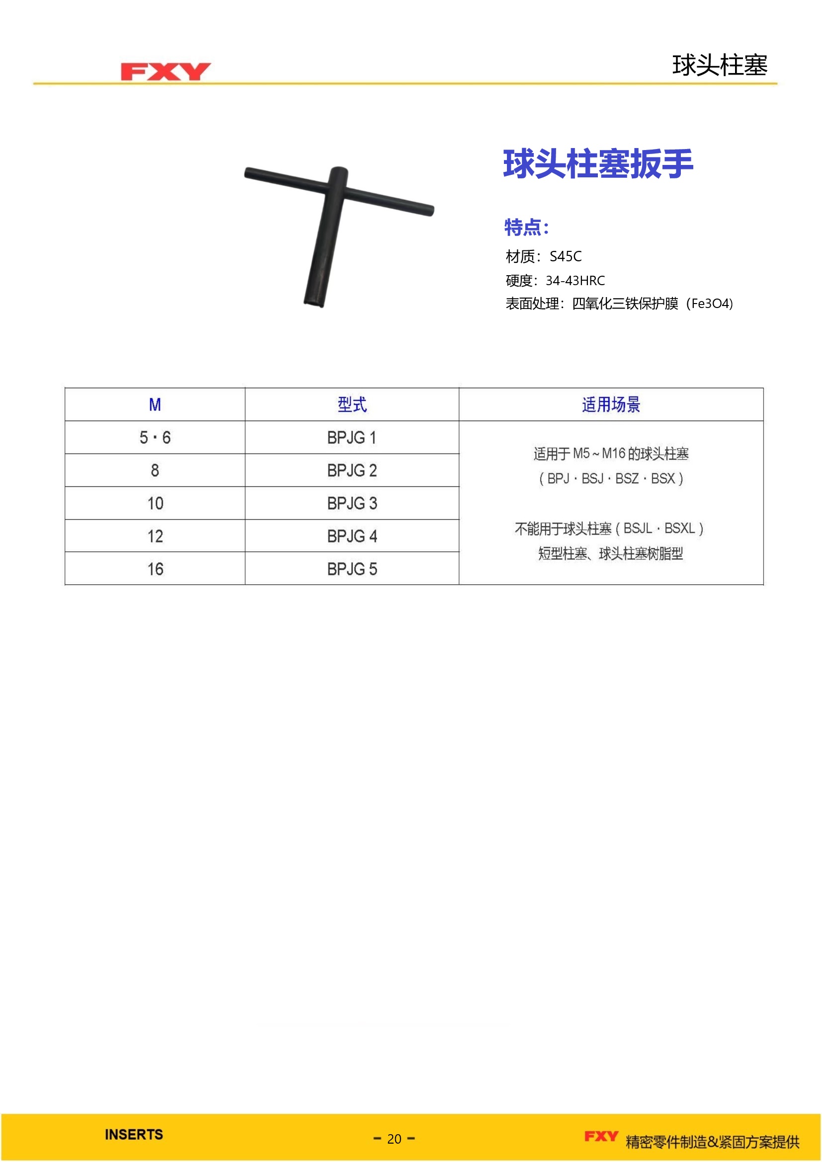 型号:球头柱塞扳手BPJG1/BPJG2/BPJG3/BPJG4/BPJG5 1、材质:S45C 2、硬度:34-43HRC 3、表直处理:四氧化三铁保护