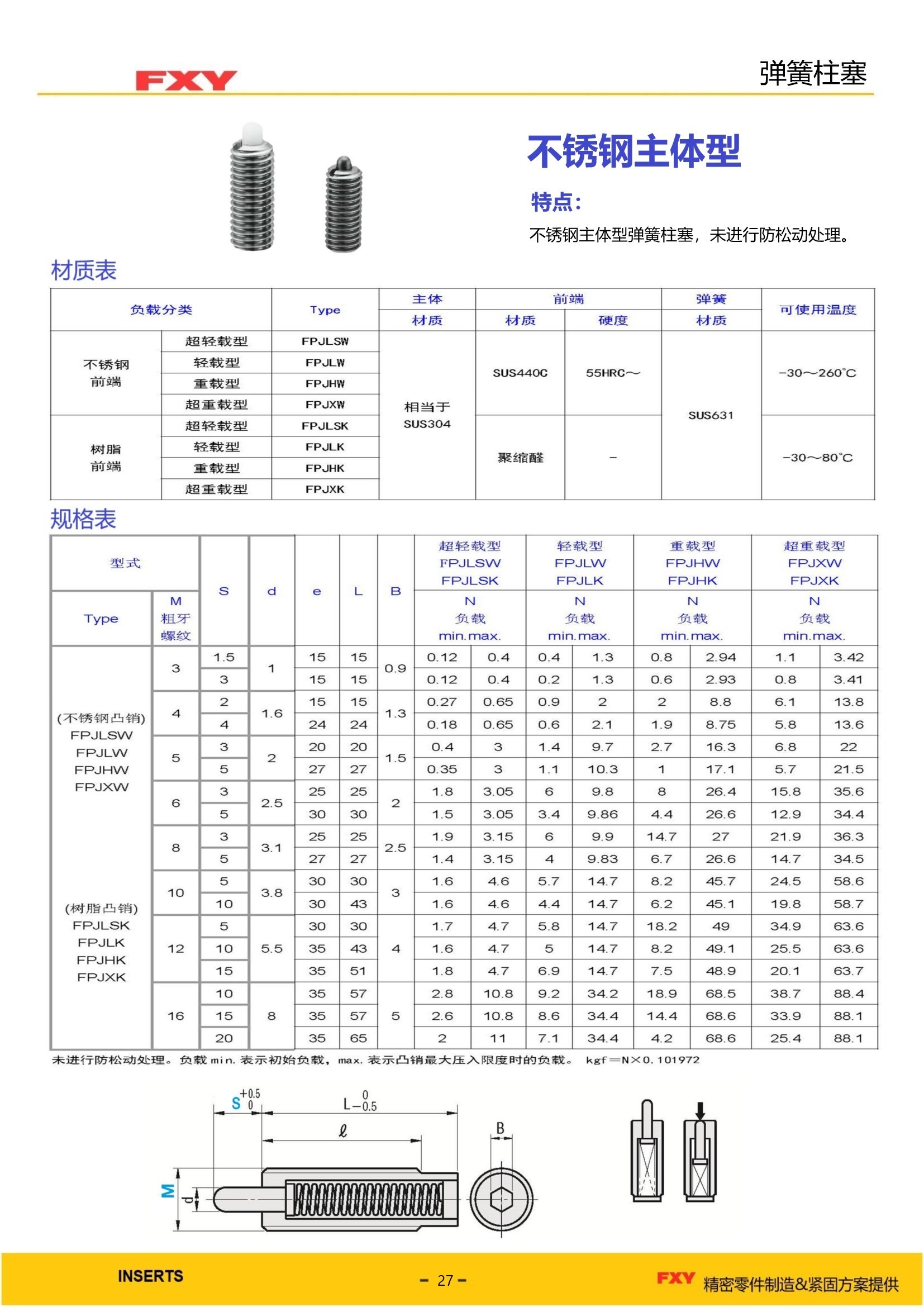 型号:不锈钢主体型弹簧柱塞FPJLSW/FPJLW/FPJHW/FPJXW/FPJLSK/FPJHK/FPJXK