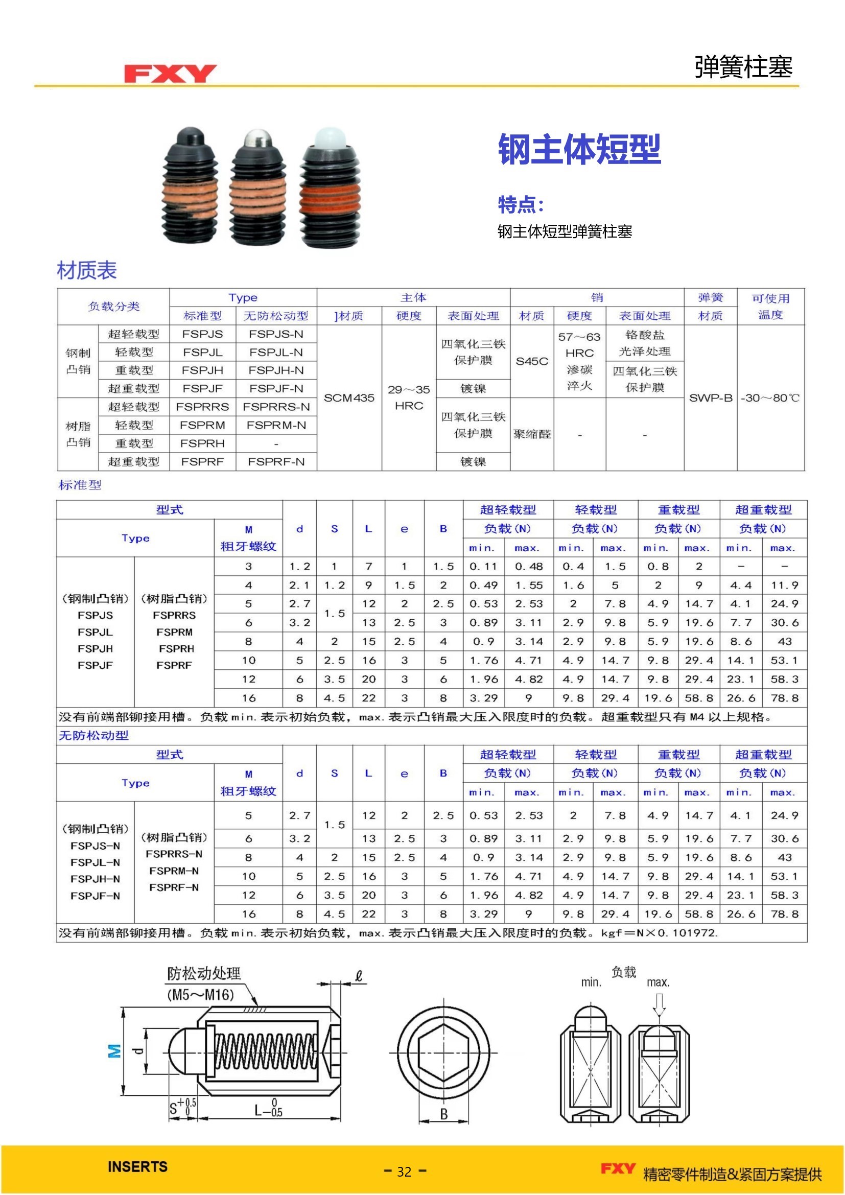 型号:钢主体短型弹簧柱塞FSPJS/FSPJL/FSPJH/FSPJF/FSPRRS/FSPRM/FSPRH/FEPRF