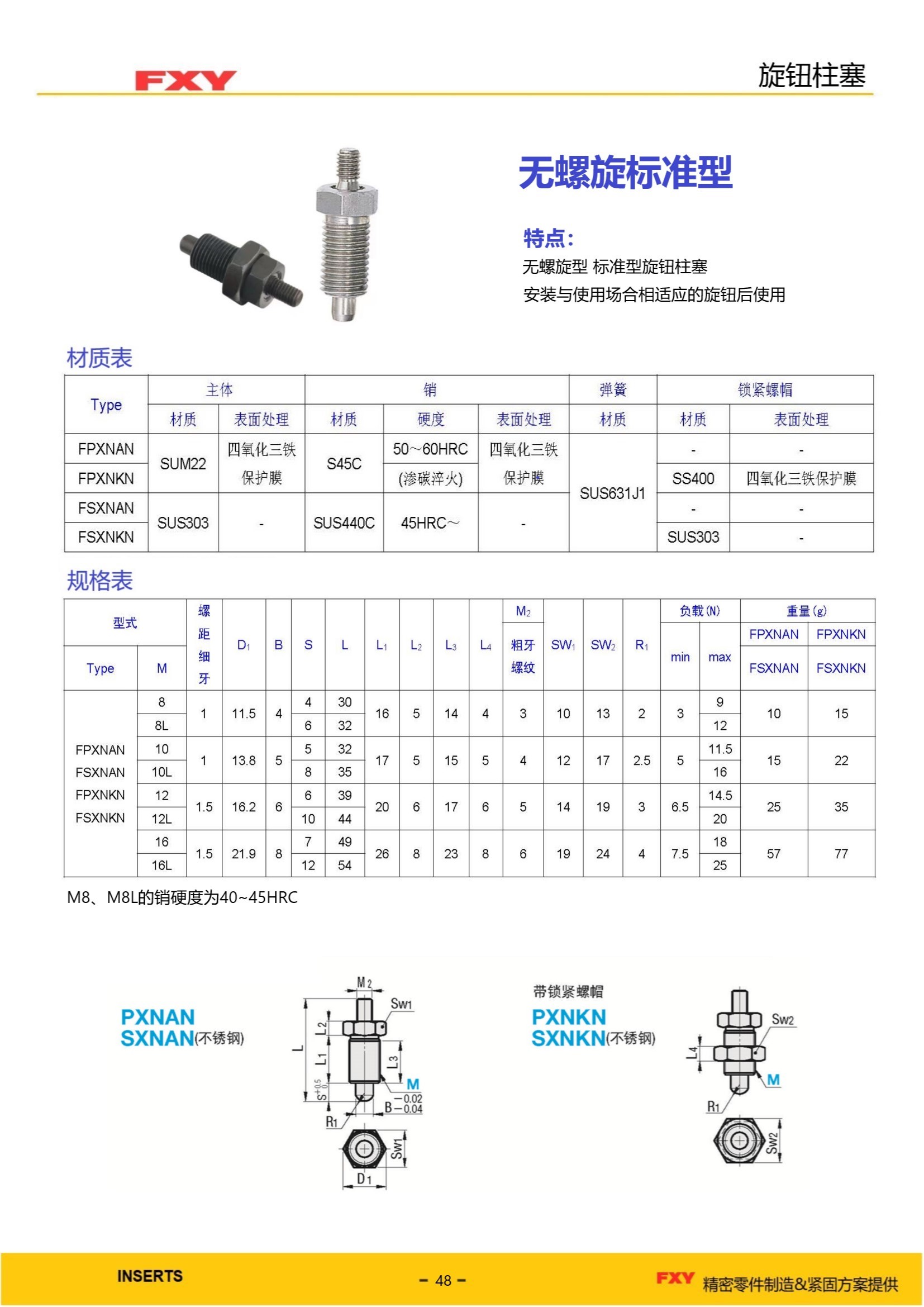 型号;无螺旋标准型旋钮柱塞FPXNAN/FPXNKN/FSXNAN/FSXNKN特点; 1、安装与使用场合相适应的旋钮后使用