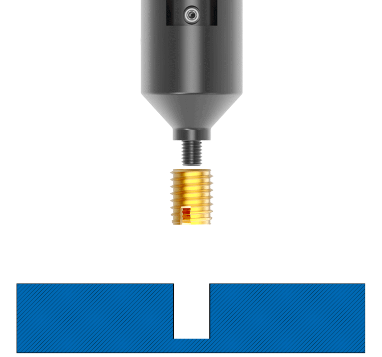 自攻嵌件,通过开槽的自攻外螺纹旋入预留的塑胶孔内构成金属内螺纹,故也称自攻螺套。常应用于不易热熔或易开裂的热固性塑料,